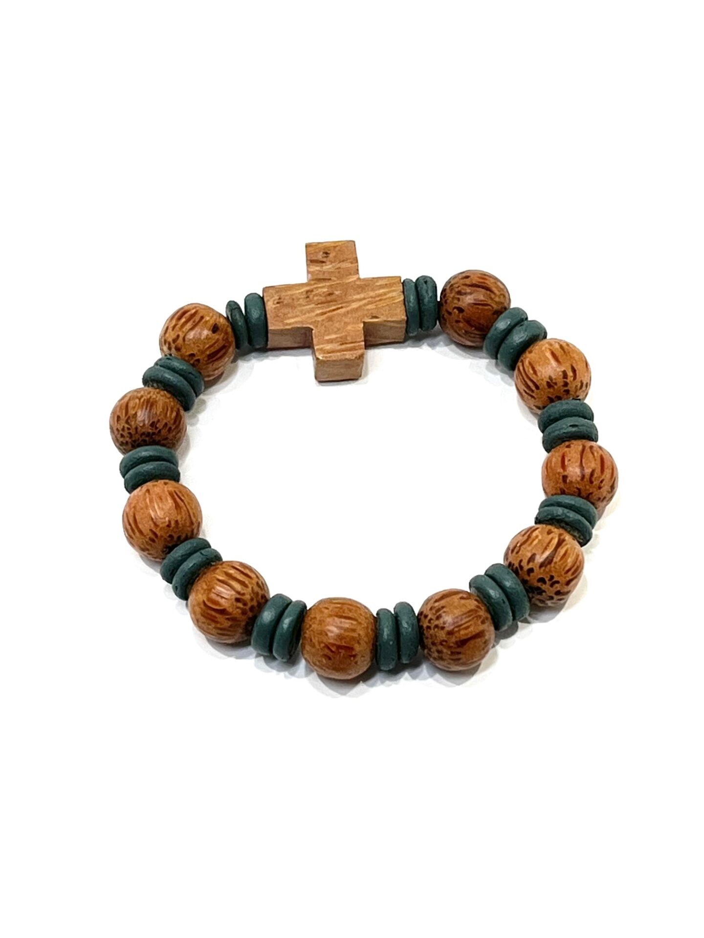 BRACELET PERLES BOIS + LAITON VIERGE MIRACULEUSE