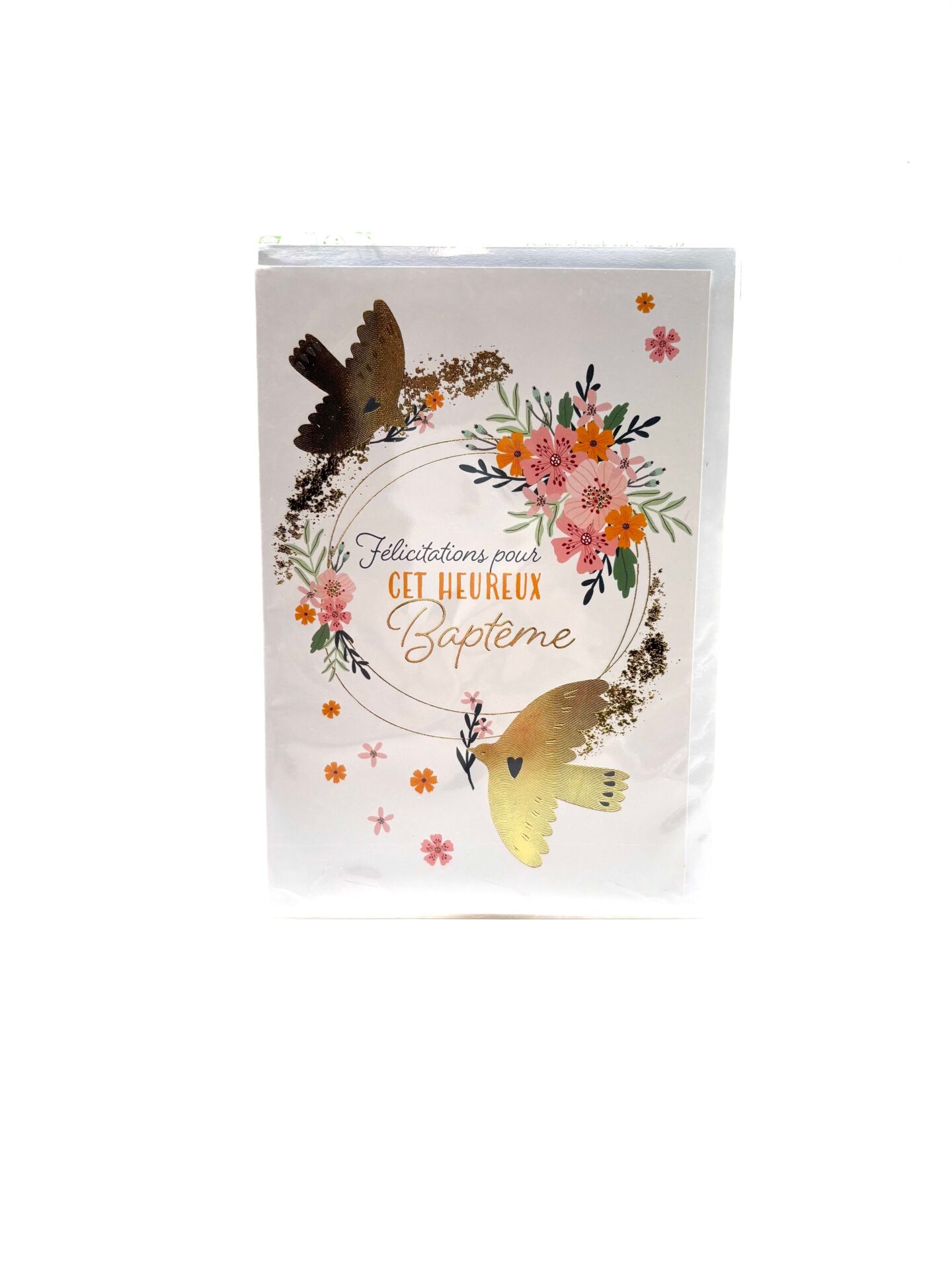 CARTE DOUBLE FELICITATIONS POUR CET HEUREUX BAPTEME COLOMBES