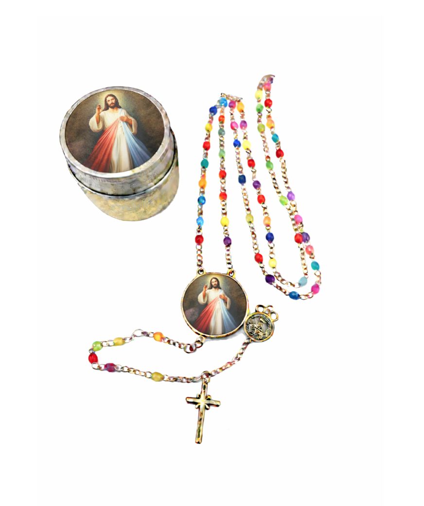 COFFRET CHAPELET COMMUNION COEUR NOTRE DAME DE LOURDES