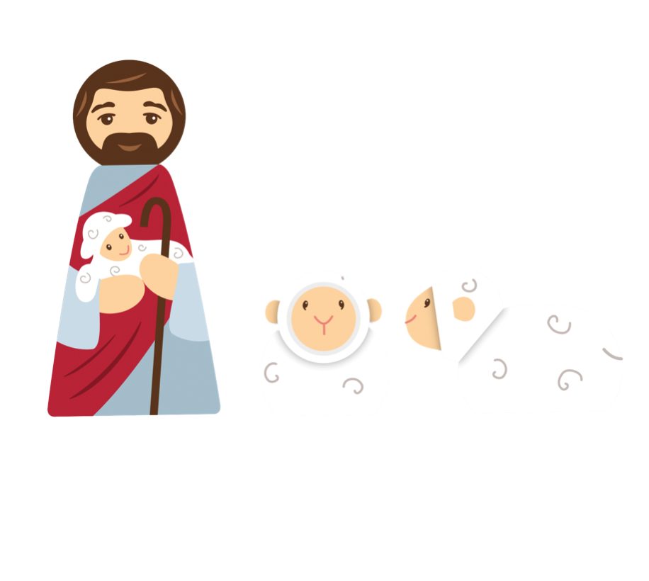 CHRIST BON PASTEUR ET MOUTON EN BOIS TOURNÉ 8.5CM + BOITE RDC