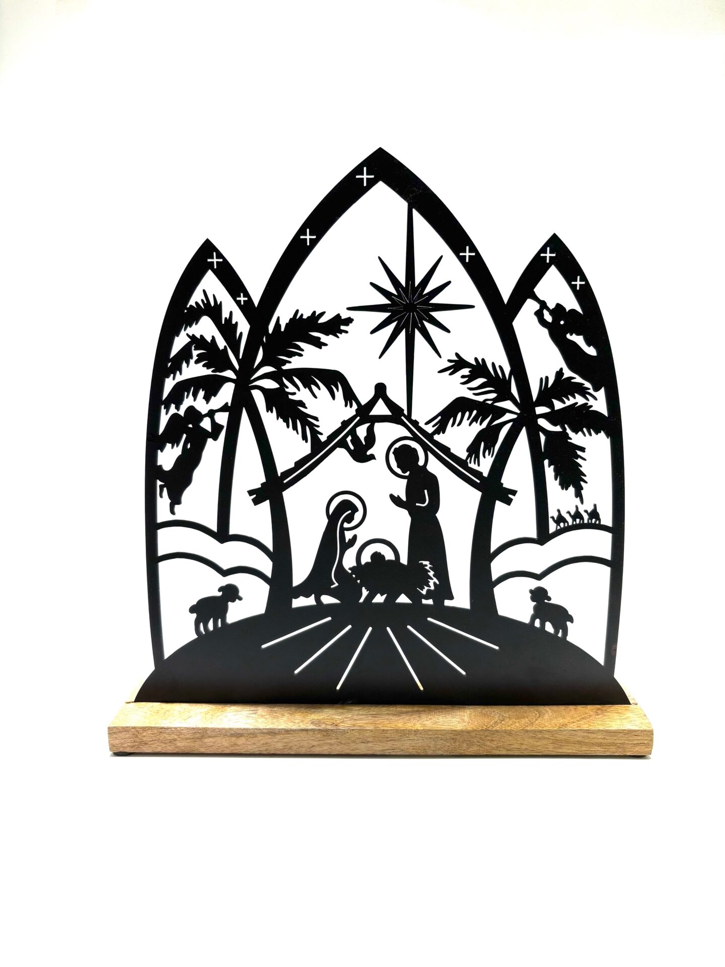 CRECHE METAL SUR SOCLE BOIS 27X29CM