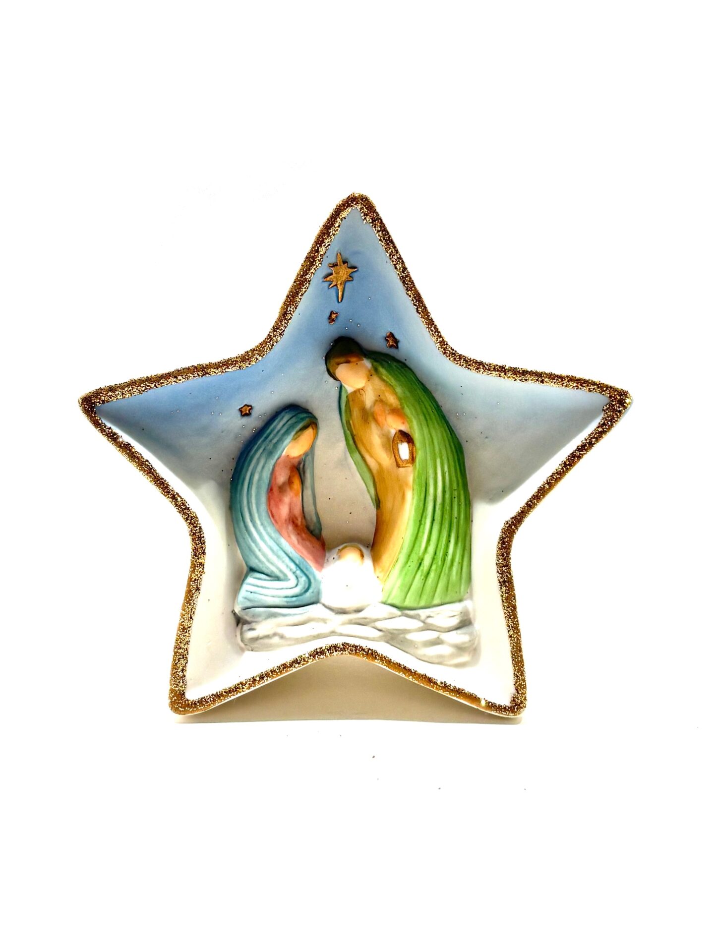 ETOILE STE FAMILLE EN PORCELAINE A POSER OU A SUSPENDRE 10CM
