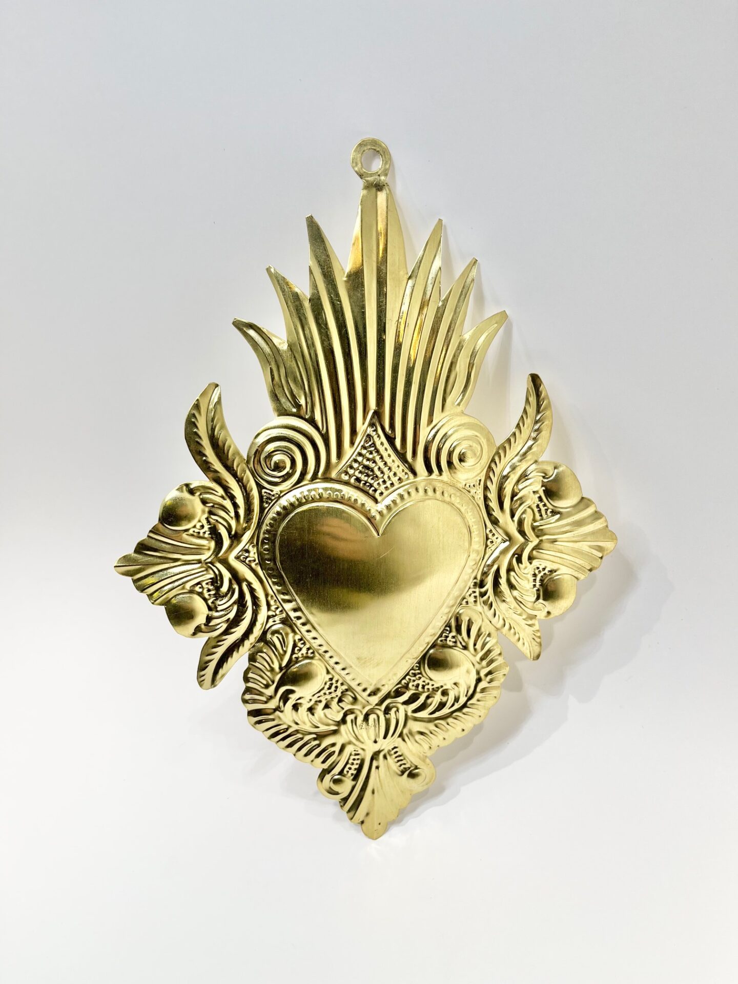 EX VOTO COEUR LAITON EMBOSSE ET DECOUPE MAIN 17X24CM
