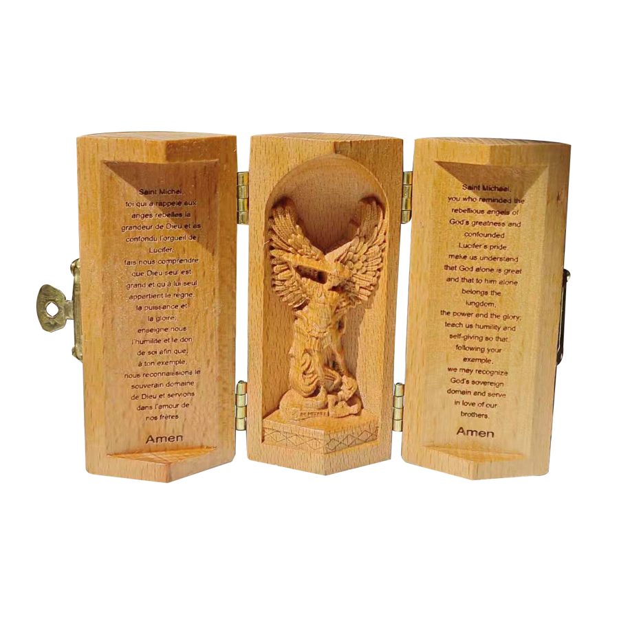 TRIPTYQUE VIERGE MIRACULEUSE EN BOIS MASSIF (HÊTRE) HT 8CM VIERGE MIRACULEUSE